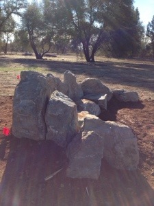 Examining the first Cyclopean rocks delivered to create a new labyrinth on the Sacramento (CA) River Trail.